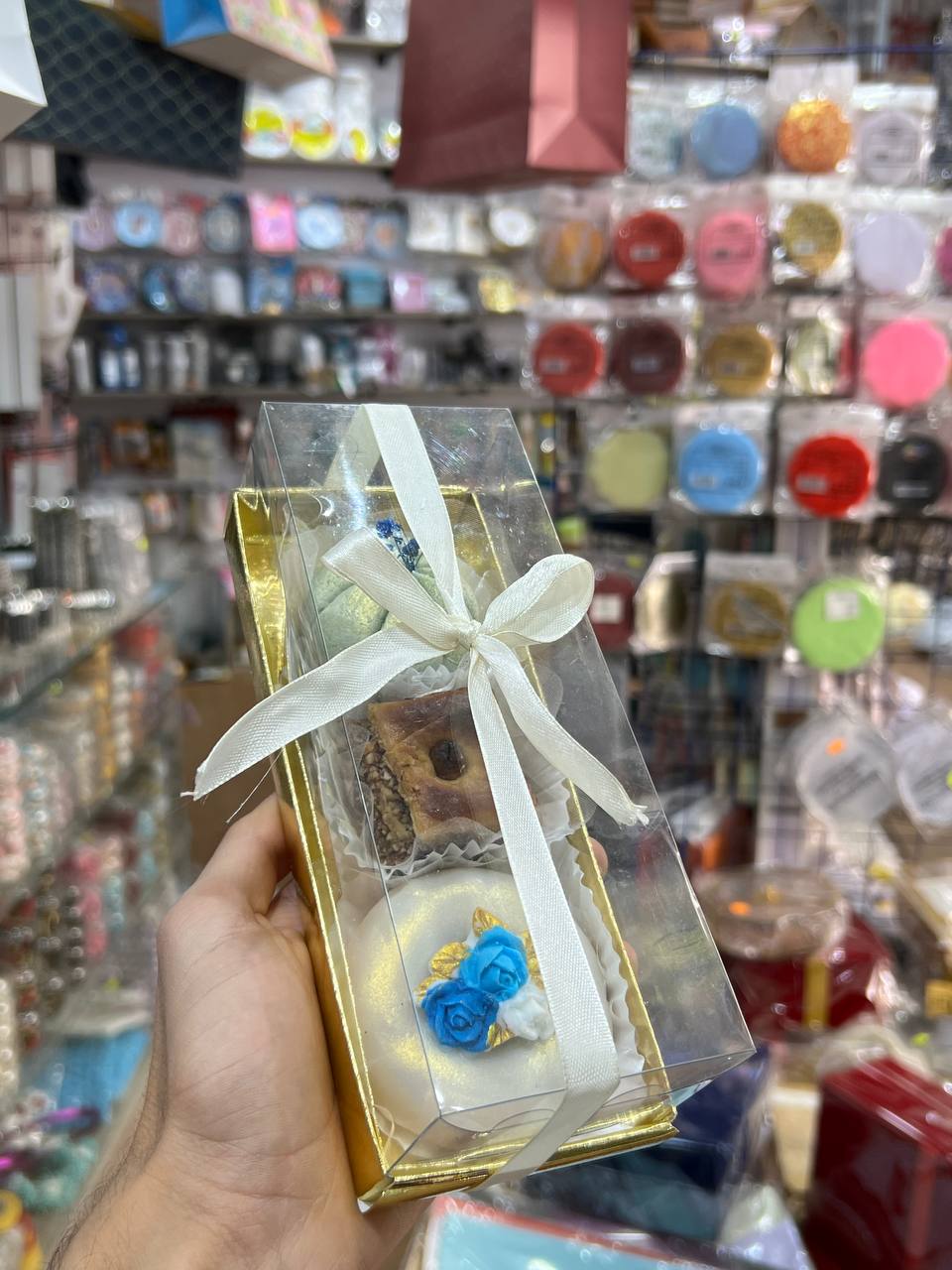 علبة 3 حبات شفافة تبين الحلوة بالذهبي